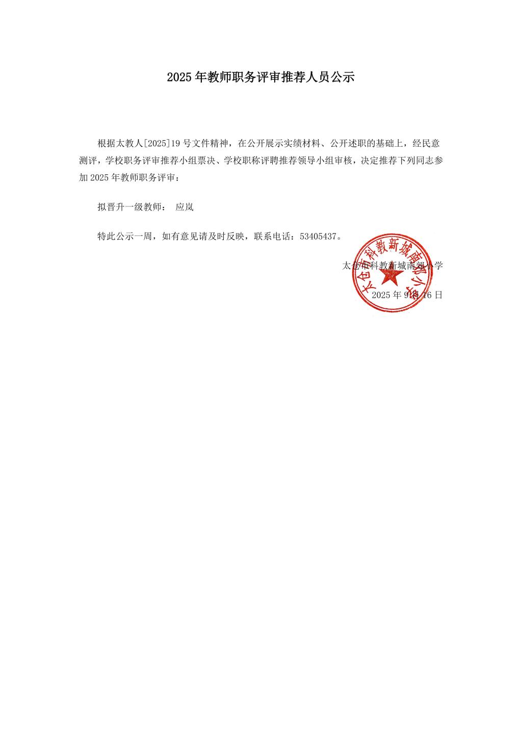 2025年教师职务评审推荐人员公示(拟晋升一级教师)