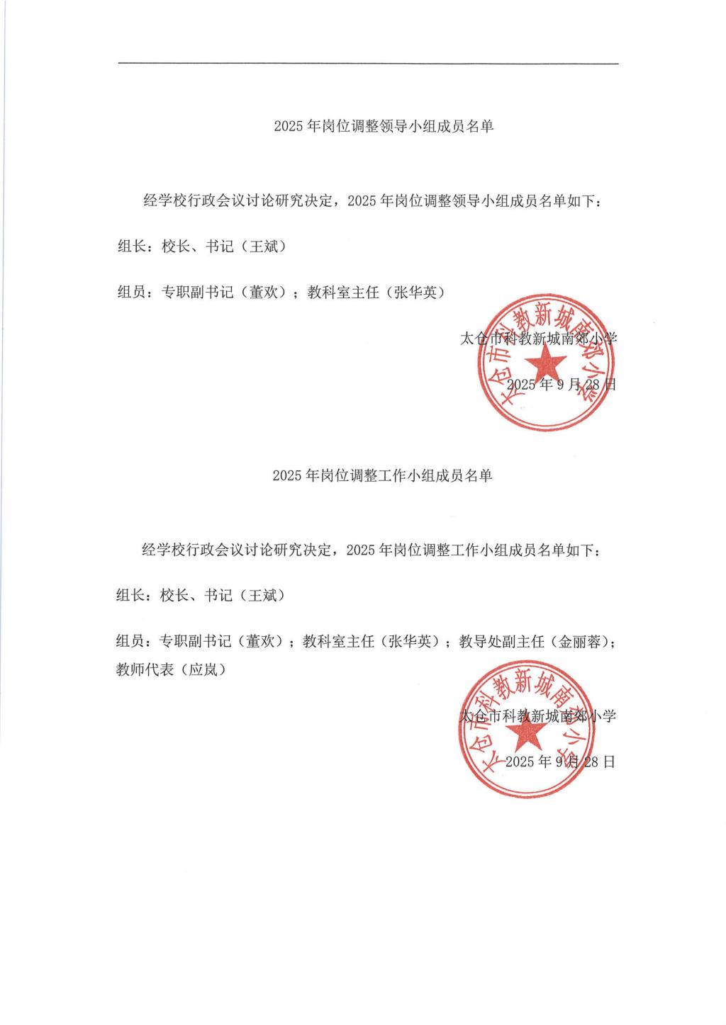 南郊小学2025年岗位调整领导小组、工作小组名单公示