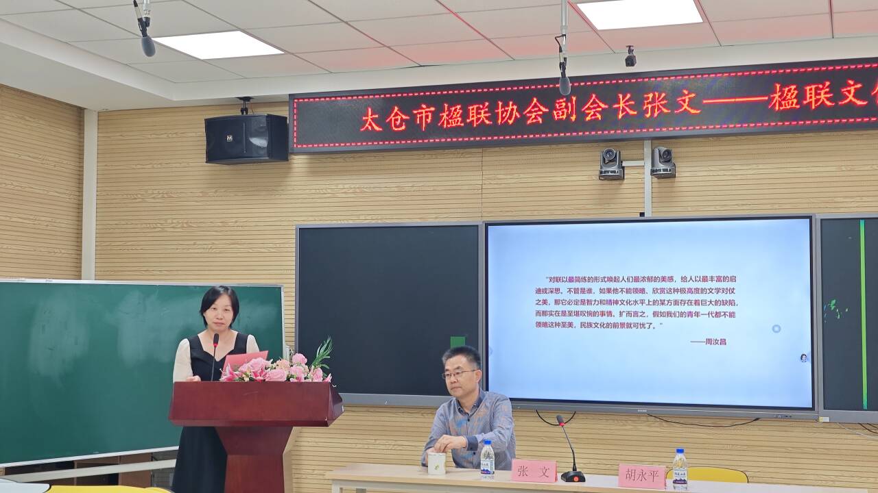 活动开篇,胡会长宣读太仓市楹联协会文件,点明中华优秀传统文化是民族根魂,楹联欣赏与创作活动兼具人心、德育、智慧、美育多重价值,为研修锚定文化传承的方向。