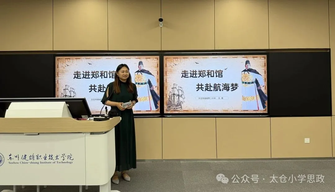 | 本次活动以 “基于故事思维的‘郑和精神’主题思政研讨” 为核心,聚焦小学思政 “非遗 +” 文化传承与 “三气” 培育的融合实践,多所小学教师呈现了特色鲜明的课例: 太仓市弇山小学张梦娇老师《寻太仓郑和足迹 学勇探航海榜样》:采用 “实地探访 + AI 情境对话” 的跨学科教学模式,围绕 “郑和在太仓的历史印记”“七下西洋的智慧与勇气”“新时代小探险家的成长挑战” 三大话题展开。通过组织学生 “智解迷路困境”“巧分手工材料” 等互动任务,将 “郑和精神” 中开拓进取、勇于探索的内涵转化为学生可感知、可践行的成长力量。学生在触摸家乡郑和文化脉络的过程中,增强了文化自信(底气);在面对挑战、主动探索的环节中,激发了为传承文化而奋斗的志向(志气) 。 太仓市港城第二小学王菁老师《走进郑和馆 共赴航海梦》:依托太仓郑和纪念馆本土资源,打造 “行走的思政课”。通过 “宝船探秘 、友谊密码、争做‘小郑和’”三大活动,运用“场景化任务 + 在地故事 + 五感体验” 策略。学生触摸水密隔舱、感知桐油工艺,领悟古代工匠智慧;通过 3D 航海模拟、情境表演,体会郑和团队 “和平友好” 的交往理念;以小组探究、宣誓宣言的形式深化精神传承。整堂课将抽象的 “郑和精神” 转化为具体可感的实践活动,让学生在 “玩中学、做中悟”,培育了坚守中国立场、崇尚和平的骨气 。 太仓市沙溪镇第一小学顾静老师《解密郑和航海 共赴出发之约》:构建 “历史探究、精神传承、时代践行” 的育人路径,设计“为何选刘家港?到过哪些地方?如何贸易交流?新时代如何出发?”四大任务闯关。融合 AI 解密选址智慧、地理探秘分析水文优势、角色扮演体验贸易协作、古今对比联结历史与现实。学生在“破译”航海难题的过程中,感悟到郑和团队“坚韧协作”的精神内核;在“古今对话” 中,理解了“出发”的时代内涵,将历史精神转化为“用合作、坚持践行文明交流”的行动宣言,强化了“以传承文化为己任”的志气与底气 。 其他特色课例:太仓市陆渡中心小学陈靓老师《聚焦郑和七航壮举,勇担民族复兴使命》,通过剖析郑和七下西洋的历史背景、探究船队智慧,渗透中华优秀传统文化认同;借助“武力、和平”决策情境,衔接 “以和为贵” 理念与人类命运共同体,推动“爱国奉献”从认知转化为担当。太仓市科教新城南郊小学董欢老师《览郑和国际影响 启正和科技新路》,引导学生分析郑和远航的国际影响,结合太仓“郑和杯” 创业大赛、仿真机器人等案例,让学生理解科技赋能传统文化创新,培养参与科技创新的使命感(底气)。 二、跨学段研讨与专家指导 苏州健雄职业技术学院专家点评 马克思主义学院院长周丽雅在致辞中强调,“郑和精神” 作为地方非遗文化的重要组成部分,是小学思政 “非遗 +” 的优质载体,要立足 “三气” 培育目标,实现文化传承与价值引领的有机统一 。 宣传部副部长何茂昌对七堂课程进行综合点评,肯定各学段围绕 “郑和精神”结合学生特点开展的差异化教学,指出思政教育需遵循 “循序渐进、螺旋上升”规律,小学阶段侧重情感认知(如培养对非遗文化的亲近感)、中学侧重思维培养、大学侧重社会担当,各学段应加强交流、共享资源,构建“纵向贯通、横向融合”的育人共同体 。 原马克思主义学院教务处处长周三庆点赞各课程“准备充分、主题突出”,尤其认可 PPT 设计的学情适配性与“中国故事”的当代价值升华,建议大学课堂借鉴中小学互动式教学经验,增强学生参与度;同时提出小学课程需进一步深化“郑和精神”与“三气”培育的关联设计。 马克思主义学院副院长韩学芹强调大中小学思政课“循序渐进、螺旋上升”的重要性,指出小学阶段要注重通过“议题式教学”等方法提升课堂亲和力,让非遗文化自然融入“三气”培育 。 |