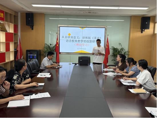 为落实英语新课标“素养导向”理念,破解小学英语语音教学中“重音律机械训练、轻意义关联应用”的痛点,2025年9月4日,英语课题组全体成员齐聚党员活动室,围绕“智能语音系统赋能小学英语听说教学的实践探索”开展专题理论学习,为后续教学实践筑牢理论根基。本次研究聚焦三大核心问题:如何借助智能语音系统建立音律感知与意义理解的关联、创设情境实现知识迁移、完善“教-学-评”一体化体系。