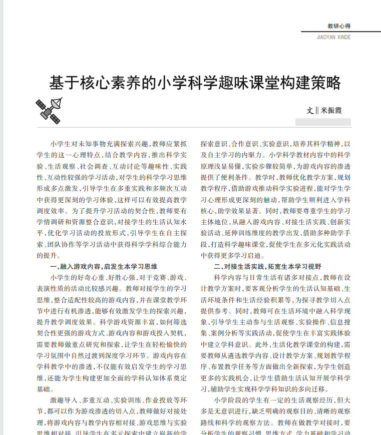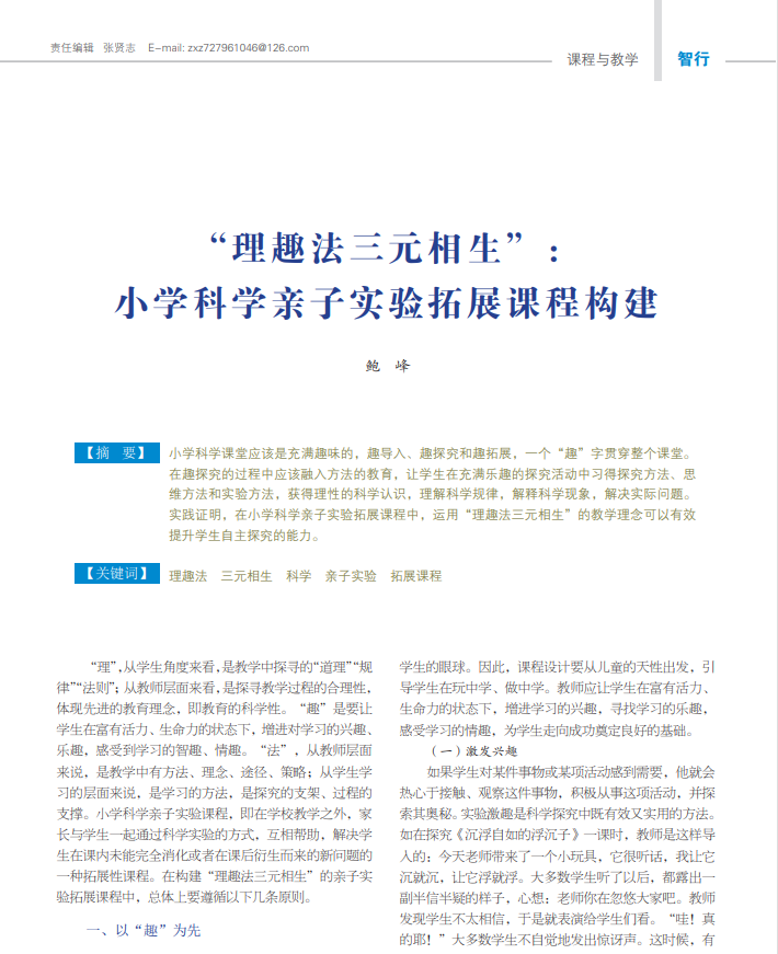 课题名称:三元相生:小学科学“理趣法”课堂教学实践研究