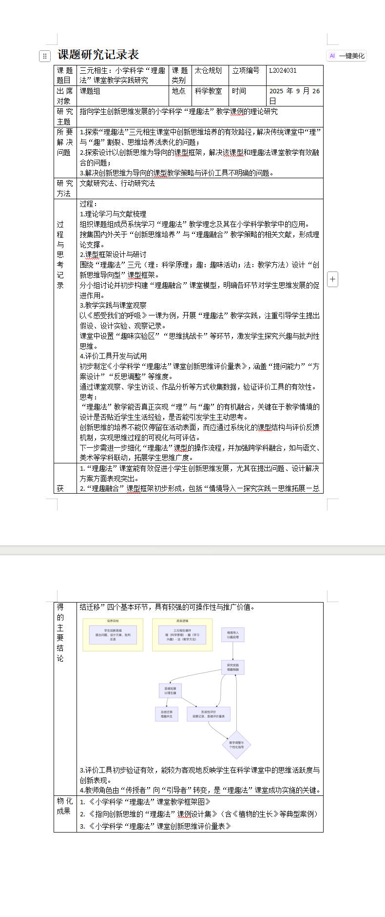 1.形成《9月理论学习报告》,整理课标核心要点与文献研究结论,明确“理趣法”融合创新思维的教学方向。