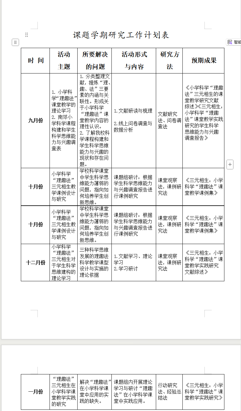 3.研究计划落地:结合课题整体目标,细化9-12月研究任务,明确10月课例设计、11月教学实践、12月研讨优化的阶段重点,确保研究有序推进。