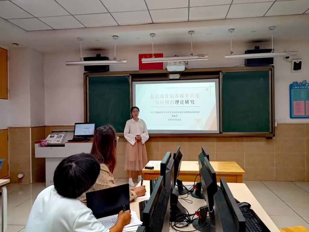 2025年9月16日,信息组举办了“信息责任培养成果转化与应用的理论研究”主题活动,旨在明确人工智能背景下适合小学生信息社会责任意识培养的核心内容,梳理可转化应用于小学教学的信息社会责任培养方法,探索人工智能校本课程与信息社会责任培养的融合路径。